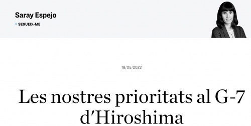 Saray Espejo publica l'article "Les nostres prioritats al G-7 d'Hiroshima" al Diari Ara