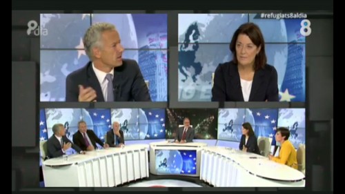 Barcelona, 22 de setembre del 2016. Anna Terrón, directora d’Instrategies, ha participat a la tertúlia del programa televisiu “8 al dia amb Josep Cuní” del canal 8tv, en el qual s’ha discutit les causes, característiques i implicacions del drama dels refugiats que estem experimentant actualment. L’Anna Terrón ha donat veu a la Unió Europea, aclarint les competències i limitacions de les seves institucions, aportant concretesa al debat. També ha fet alguns comentaris sobre la Cimera de Nacions Unides sobre Migrats i Refugiats en la qual va participar, reivindicant la necessitat de la Unió Europea de fer visibles els seus esforços en relació a la protecció tant dels migrats com dels refugiats.