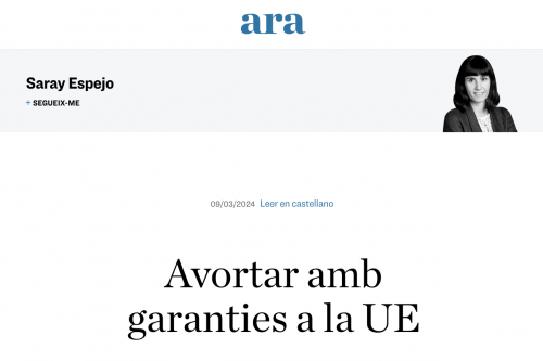 Saray Espejo escriu al Diari Ara sobre la inclusió de l'avortament a la Carta Europea de Drets fonamentals