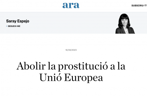 Saray Espejo publica l'article "Abolir la prostitució a la Unió Europea" al Diari Ara