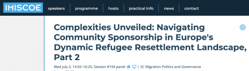 Gemma Pinyol-Jiménez participated in the 21st IMISCOE Annual Conference "Migration as a Social Construction, a Reflexive Turn," hosted by the ISCTE - University Institute of Lisbon (Portugal) from July 2-5, 2024. In the workshop "Complexities Unveiled: Navigating Community Sponsorship in Europe's Dynamic Refugee Resettlement Landscape," she presented research on Auzolana II, the experience of Community Sponsorship in the Basque Country.