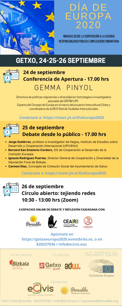Gemma Pinyol-Jiménez participa en la VI Edición Día de Europa, online: Miradas de la Cooperación a la Acogida organizado por Ecivis y Perualde 2020